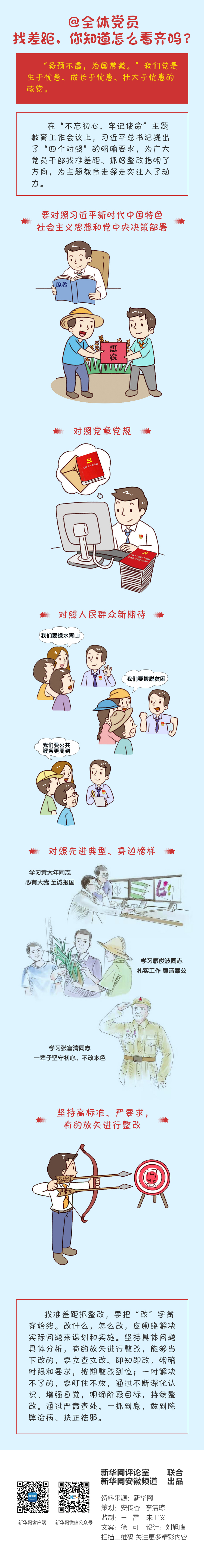 差距不找不明,問題不攻不破。開展“不忘初心、牢記使命”主題教育,找差距是要牢牢把握的總要求之一。找差距,就是要對照習(xí)近平新時(shí)代中國特色社會主義思想和黨中央決策部署,對照黨章黨規(guī),對照人民群眾新期待,對照先進(jìn)典型、身邊榜樣,堅(jiān)持高標(biāo)準(zhǔn)、嚴(yán)要求,有的放矢進(jìn)行整改。